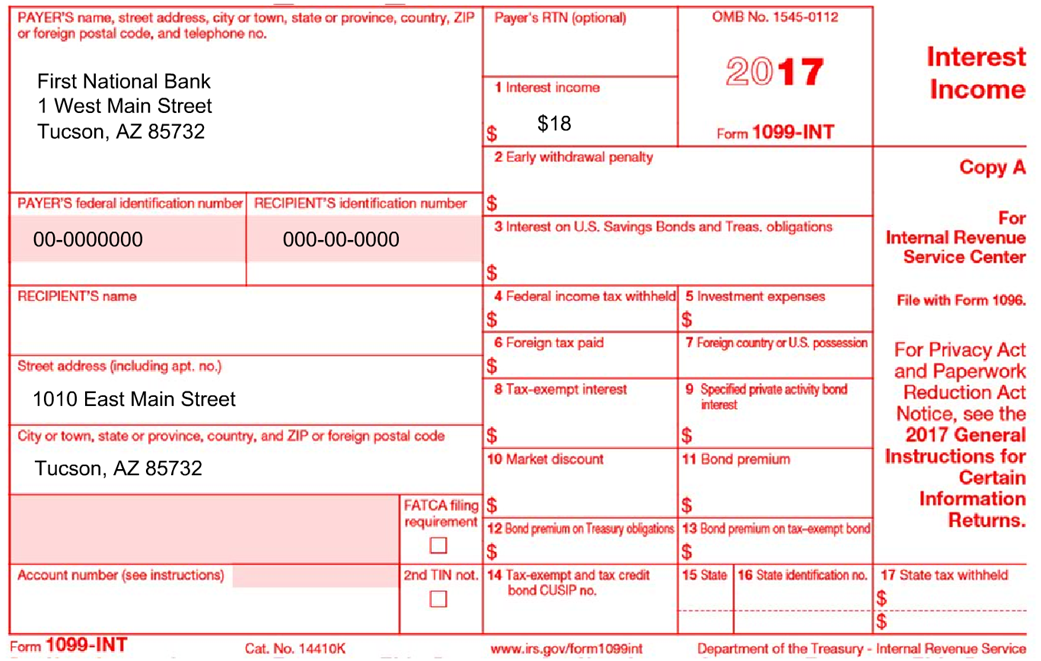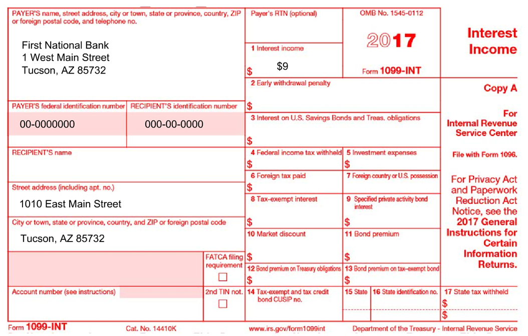 The 1099-INT is sent to you by your bank and shows