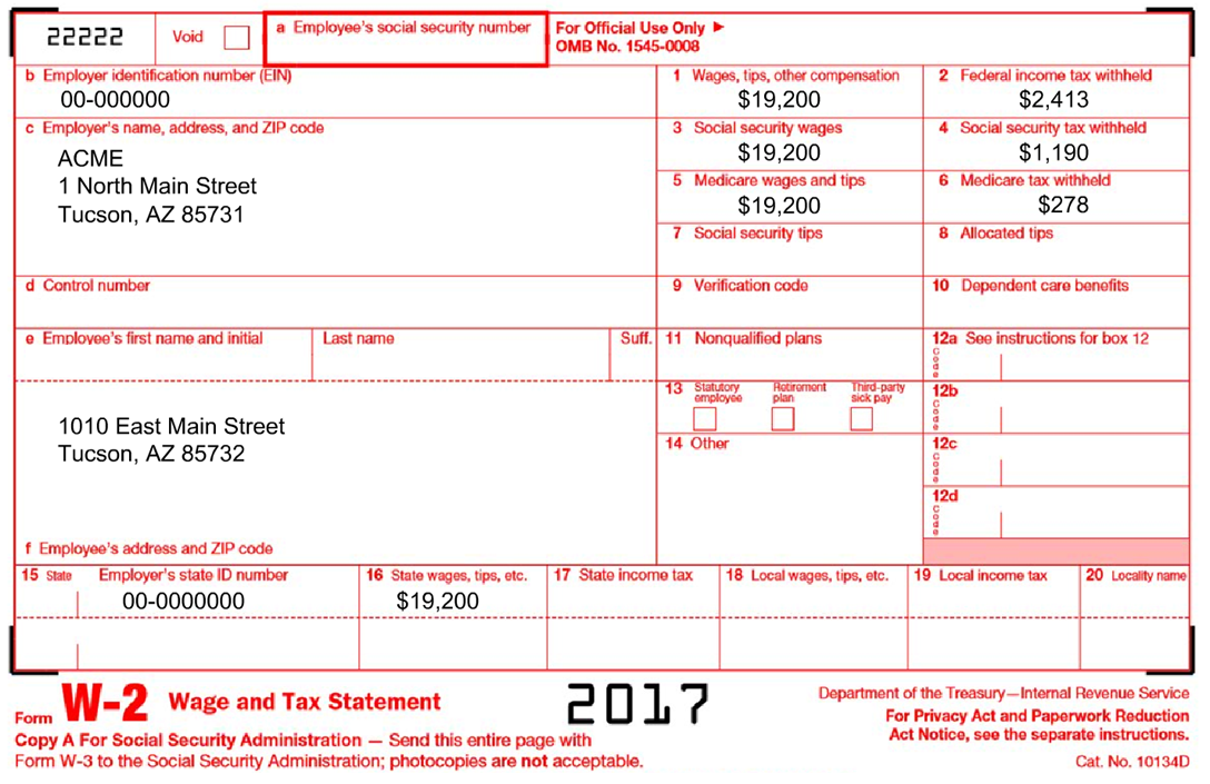 NOTE: For this lesson DO NOT fill in your Social Security number.