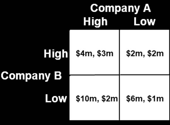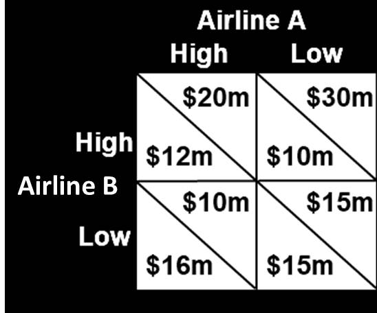 1. Airline A information is located in the upper right hand corner of the matrix and Airline B information is located in the lower left hand corner of the matrix.