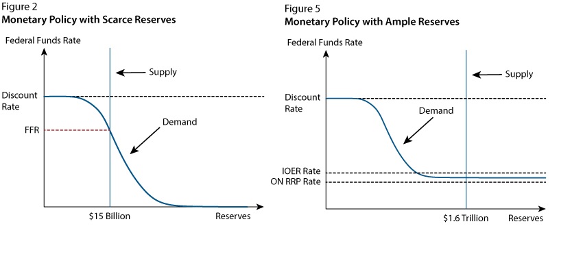 being that not all countries' central banks have an ample reserves policy. The FED graphs compare limited reserves vs. ample